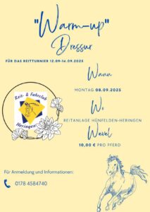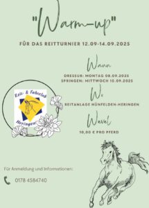 Die Ausschreibung, sowie die Zeiteinteilung stehen unter dem Menüpunkt „Dressur- und Springturnier 2025“ zur Verfügung.