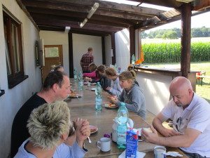 Nach einer sehr stürmischen Nacht mit Regen und auch einem kleinen Gewitter musste sich zum Frühstück besonders gestärkt werden. Denn danach stand der Arbeitseinsatz auf dem Plan. Jede Menge Helfer waren vor Ort und somit konnten wir unseren Platz und die Außenanlage für das bevorstehende Turnier am 18-20.09.2015 schön herrichten.